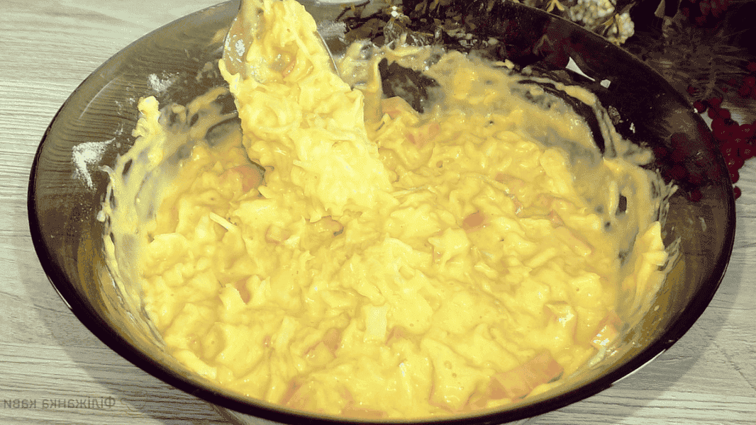 Якщо у Вас капуста дуже соковита і на цьому етапі тісто Вам здасться рідким, можна додати ще 1 ст. л. борошна, але зазвичай цього не потрібно.
