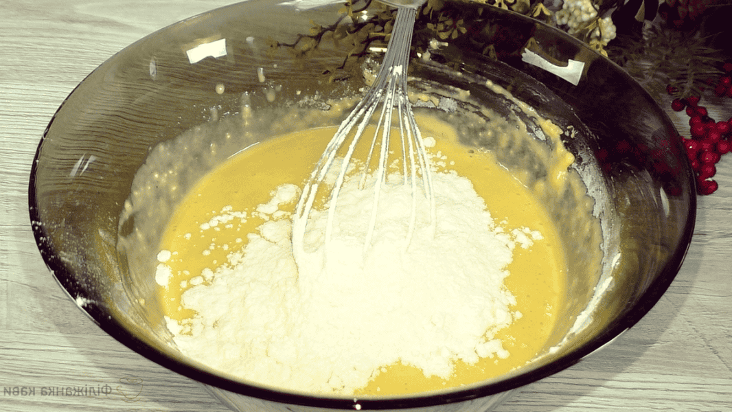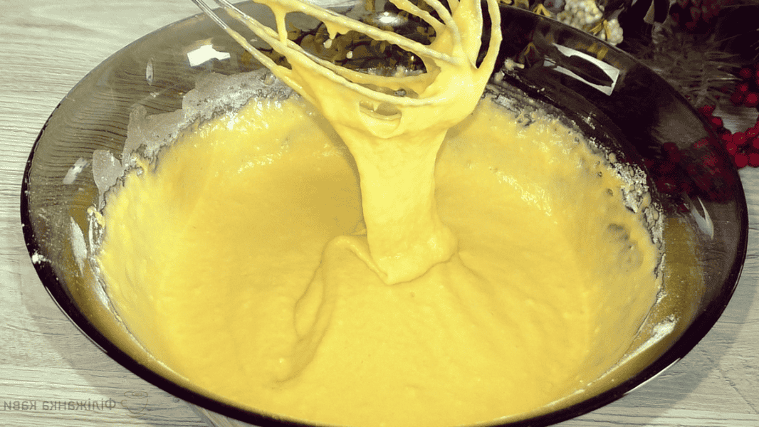 За консистенцією виходить тісто середньої густоти, воно легко стікає з вінчика.