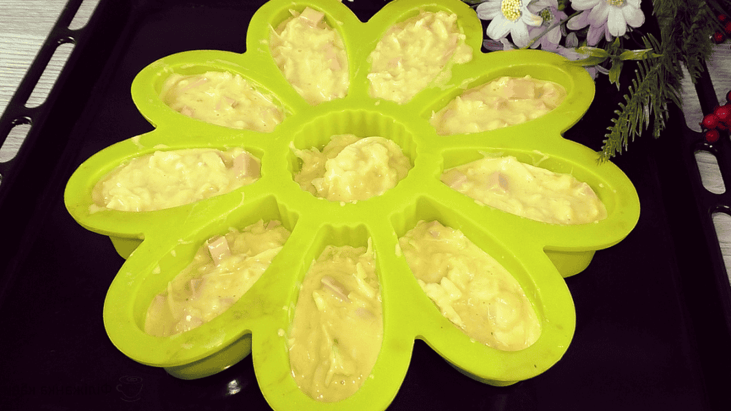 Викладаю тісто, можна використовувати просто одну велику форму для кексів або форму для випічки діаметром не більше 22 см.
