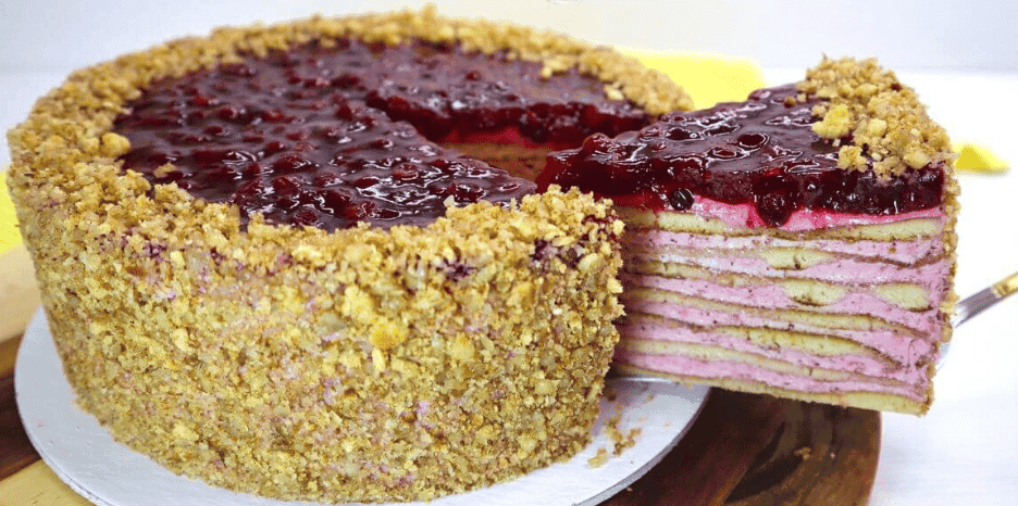 Забираємо торт у холодильник до готовності брусничного джему.