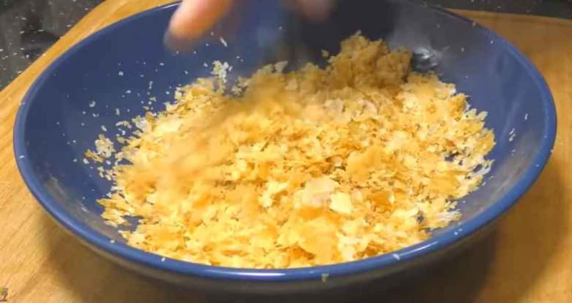 Знімаємо крихту з верхівок коржів – вона потрібна для посипання торта.