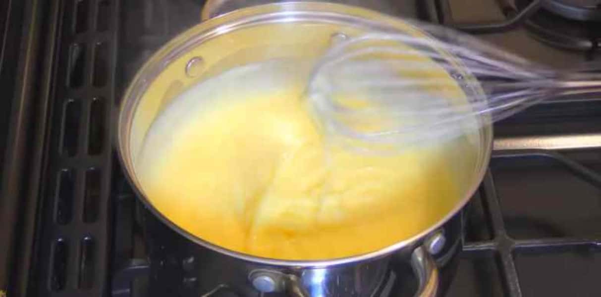 Виливаємо в яєчну суміш молоко, ставимо на помірний вогонь.