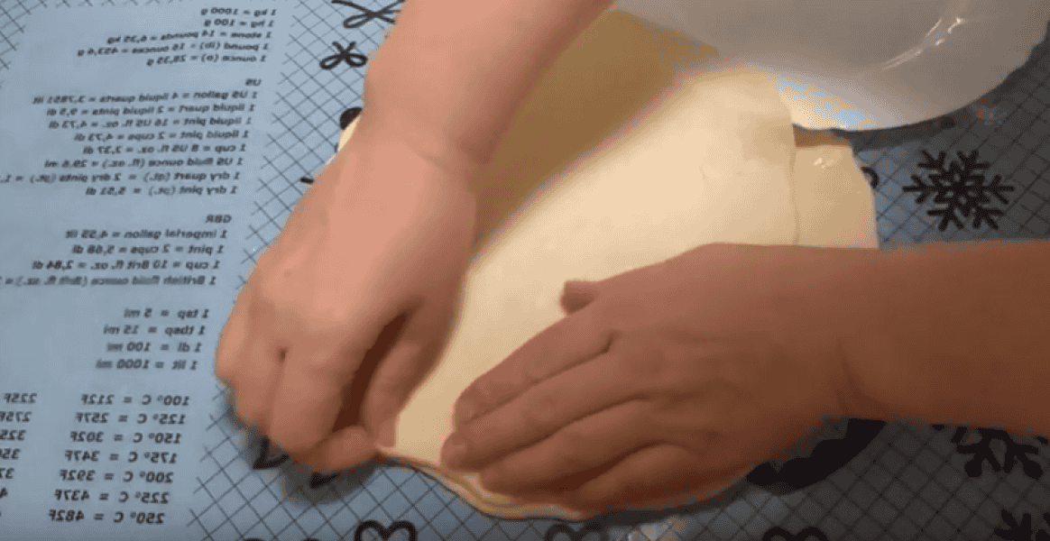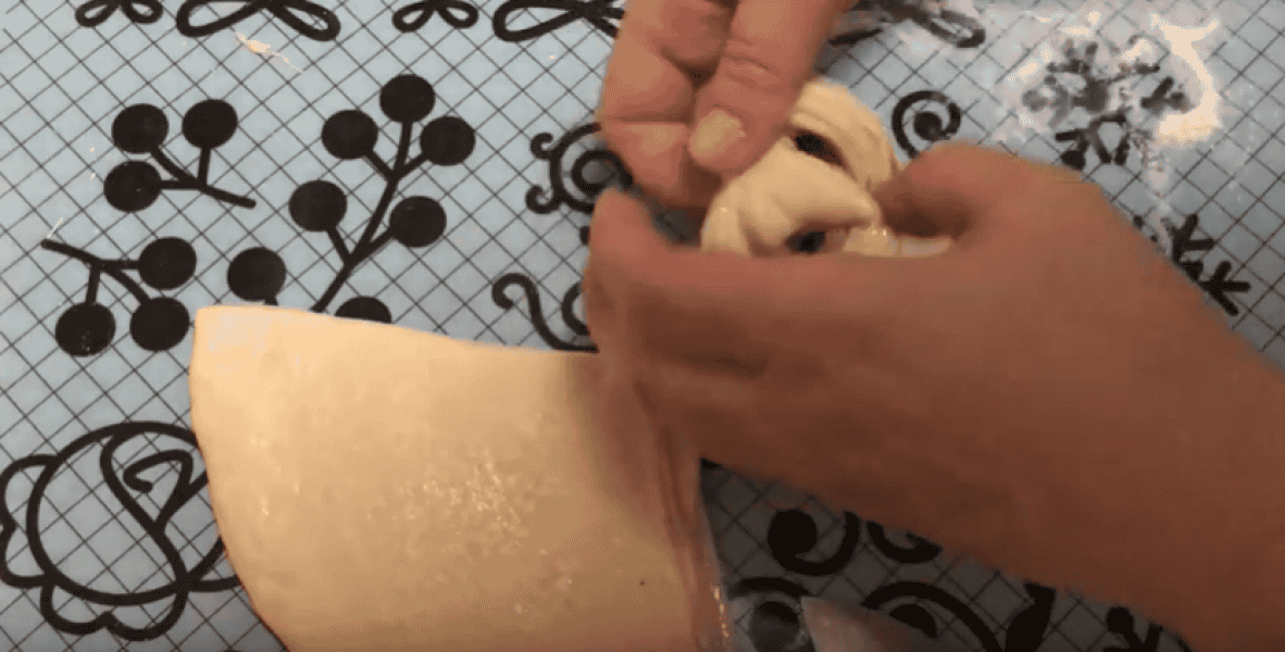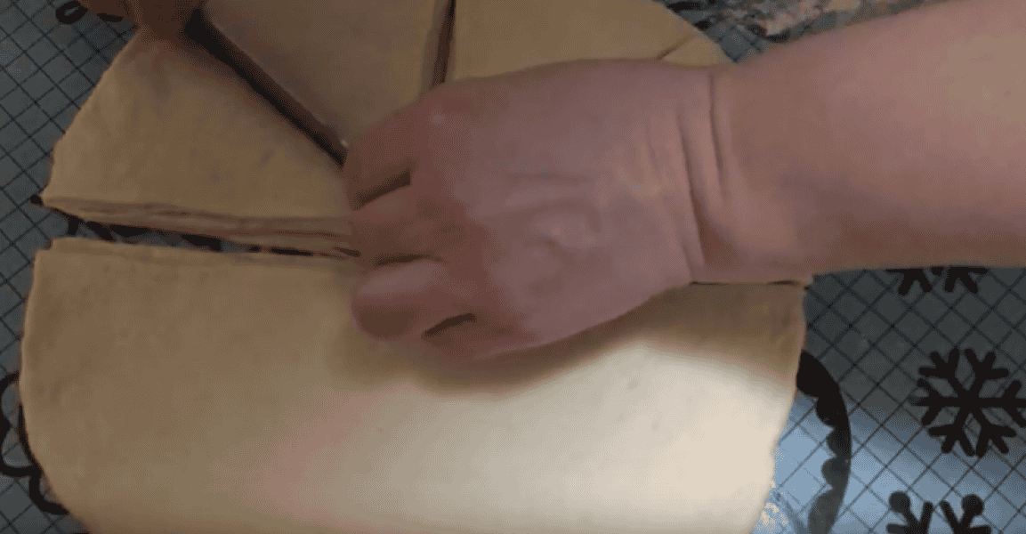 Підрівнюємо, защипуємо краї, зверху підрівнюємо та розрізаємо на 8 частин.