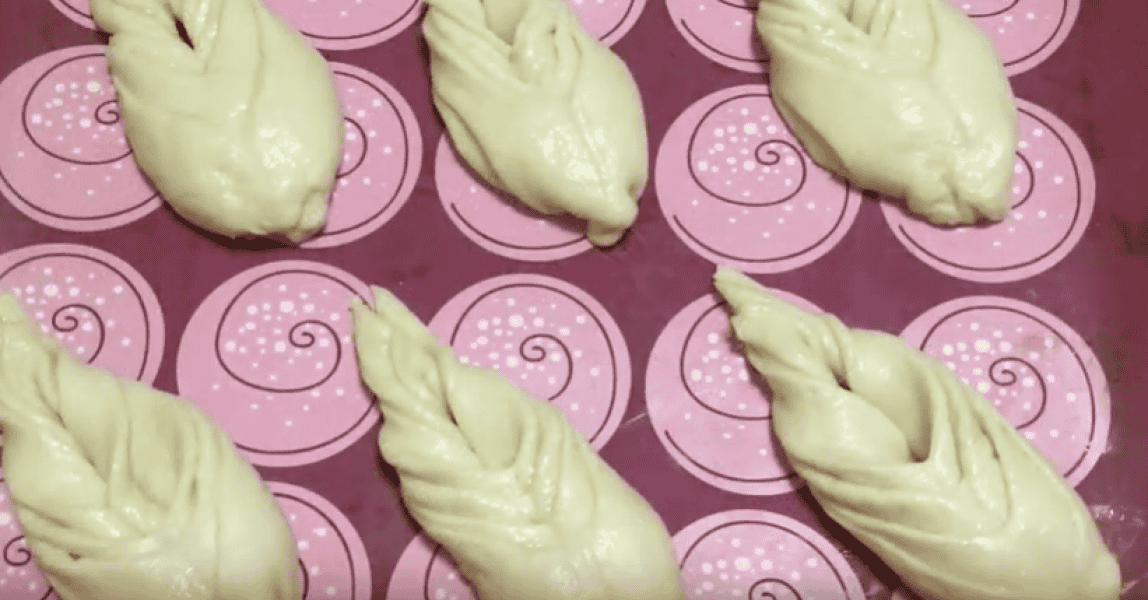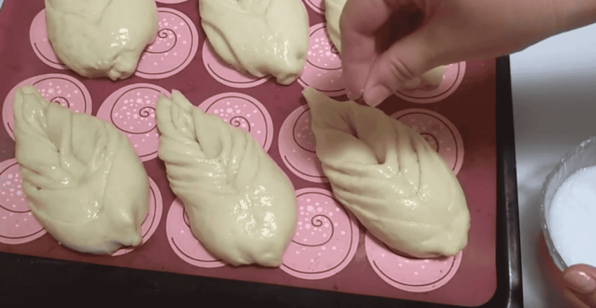 Булочки укладаємо на деко, застелене пергаментом або силіконовим килимком, накриваємо і ставимо на вистоювання в тепле місце на 20-25 хв.