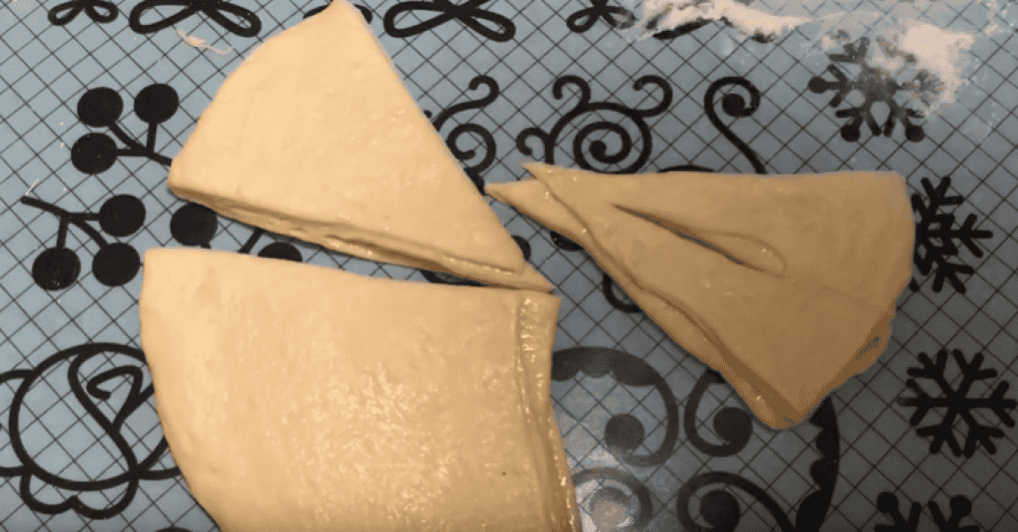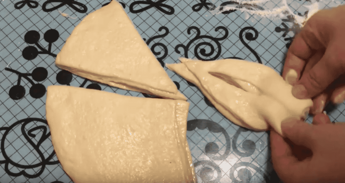 У середині кожного трикутника робимо розріз, кінчики трикутника защипуємо і підвертаємо вниз, верхню частину трикутника простягаємо в отвір.