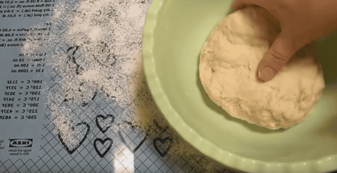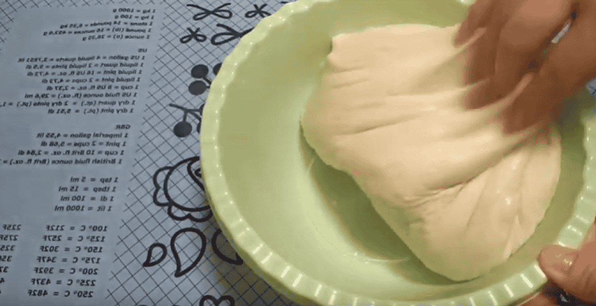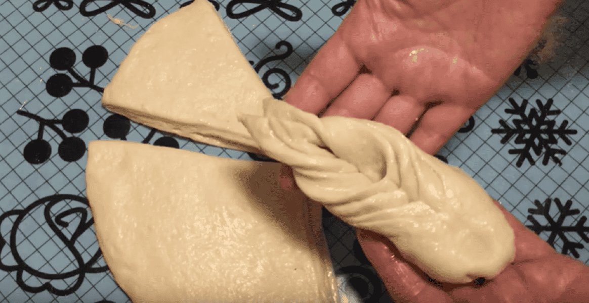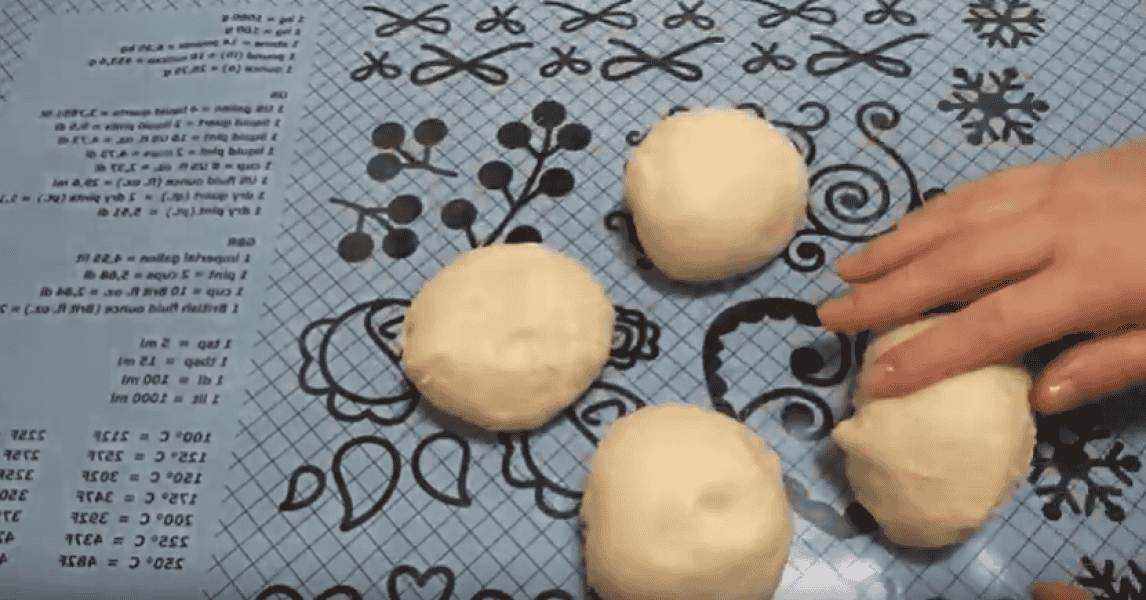 Тісто добре підійшло, обминаємо, ділимо на чотири рівні частини.
