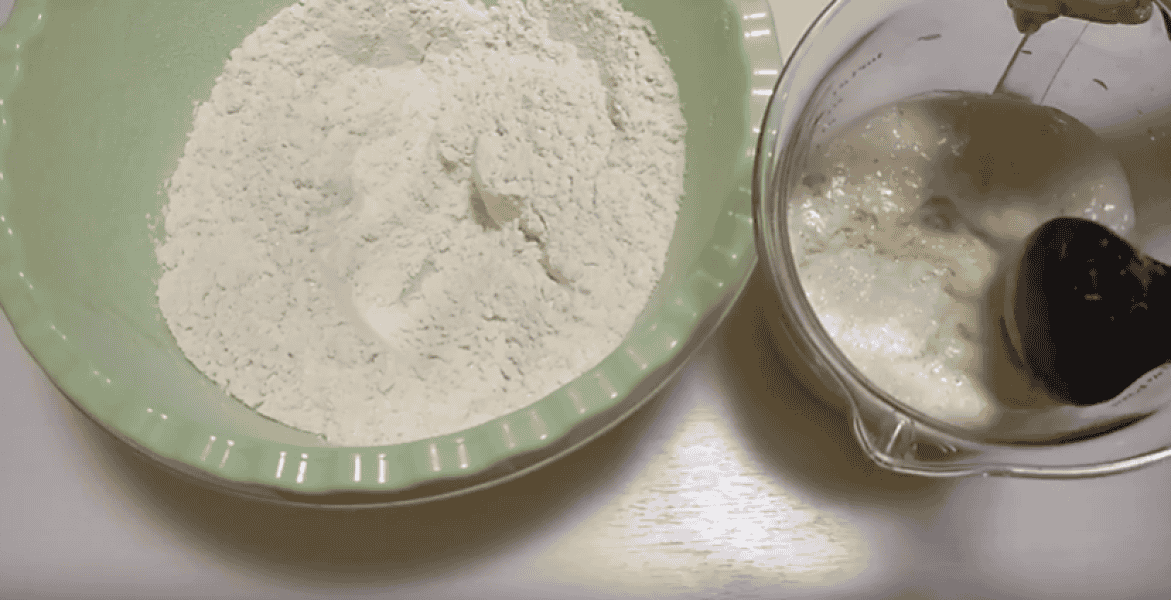 4-5 ст л з гіркою борошна від загальної кількості, розмішуємо, накриваємо і ставимо опару підходити в тепле місце на 15-20 хвилин.