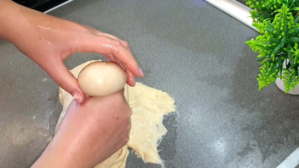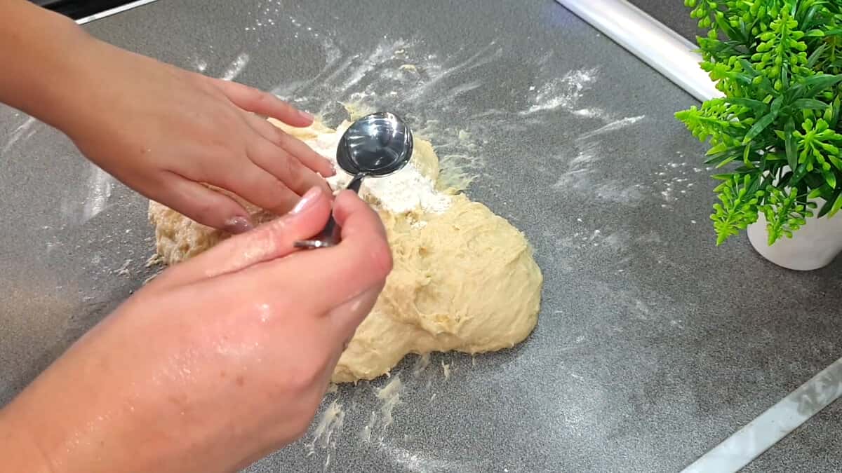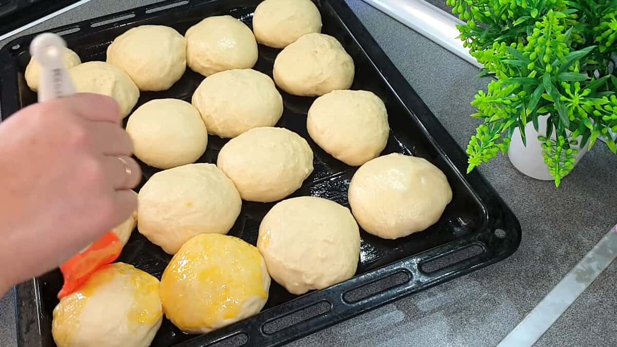 Руки змащуємо олією. Тісто затискаємо між вказівним і великим пальцем і відриваємо потрібного розміру заготівлю. Враховуємо що булочка збільшиться рази в 2 в розмірі.