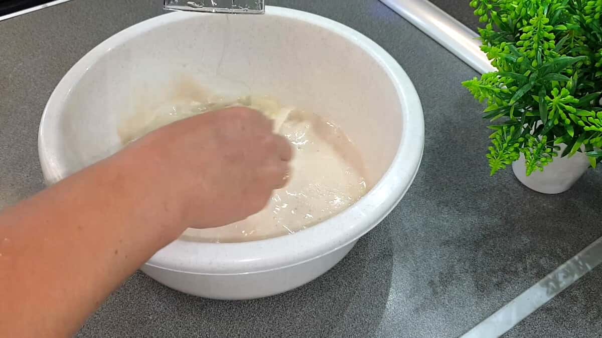 і продовжую замішувати тісто. Всього руками його вимішувала 5 хвилин