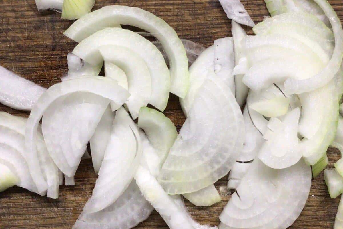 Приготуємо начинку. Ріпчасту цибулю нарізаємо півкільцями.