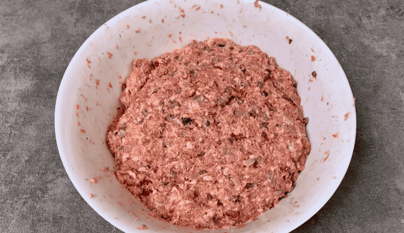 Фарш для цього терріну завжди роблю свинячо-яловичий.