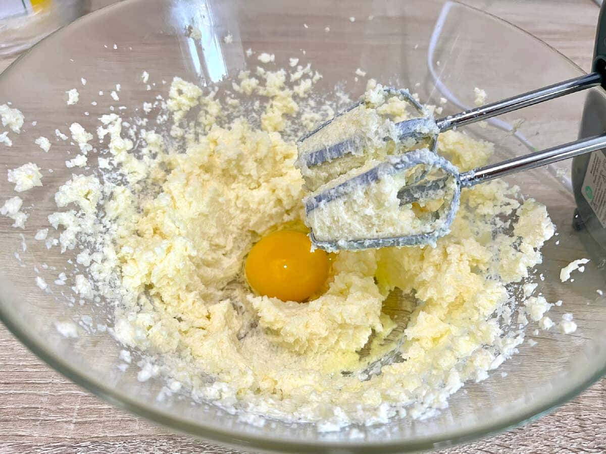 Збиваємо міксером на невеликій швидкості і додаємо яйця – по одному, продовжуючи збивати.