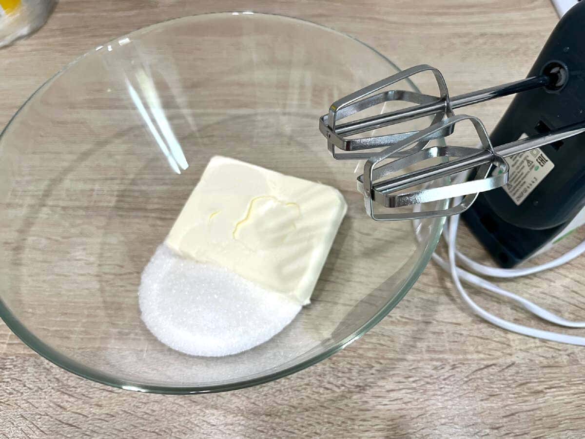 Беремо вершкове масло, розм’якшене при кімнатній температурі, і цукор.
