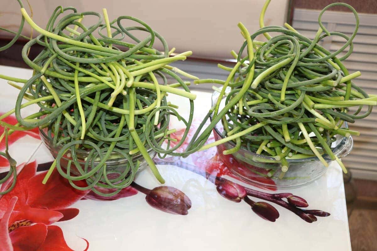 1. Стрілки часнику я добре промиваю. Зрізаю квіткову частину.