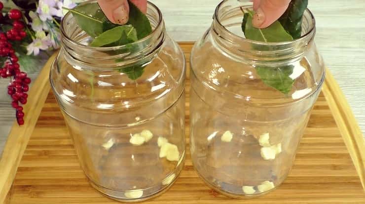 - Листя вишні, штук по 5 на банку.