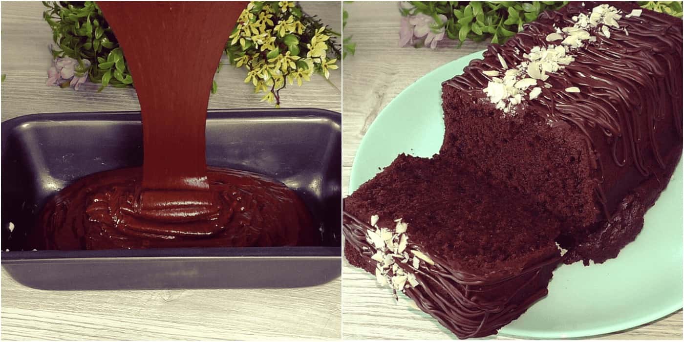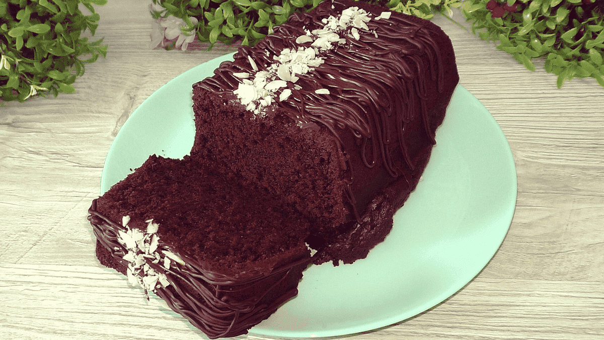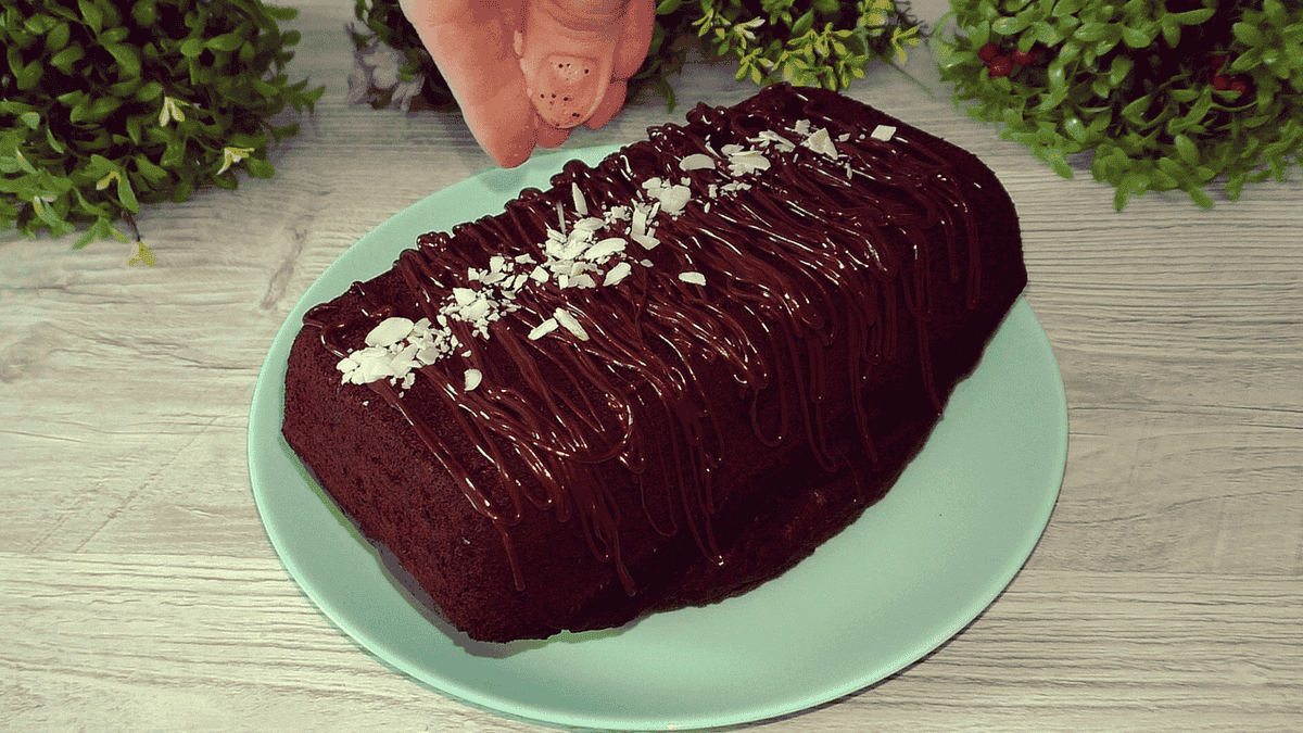 Охололий кекс поливаємо шоколадною глазур’ю або розтопленим шоколадом.