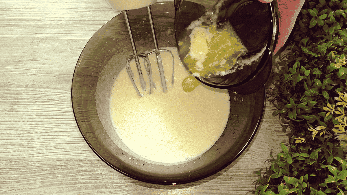 Додаємо по черзі розтоплене вершкове масло.
