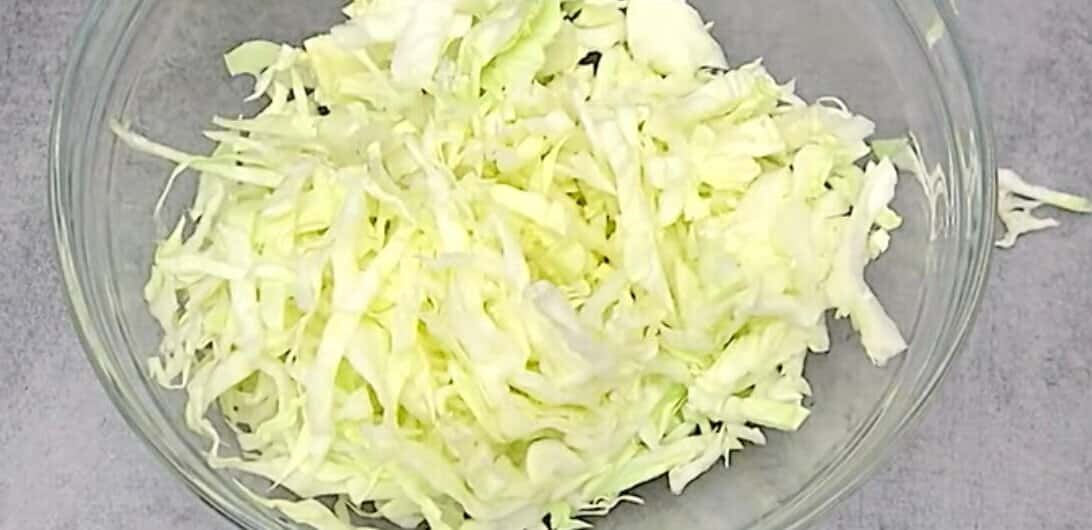 Від качана капусти відрізаємо частину і дрібненько нарізаємо. Відправляємо в велику чашу.