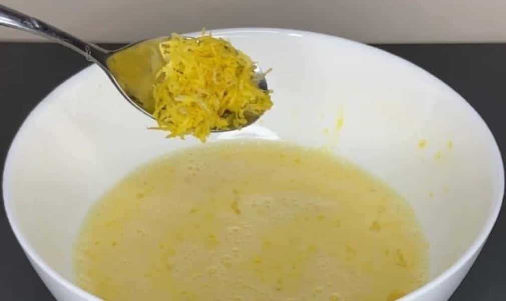 Два яйця збиваю з цукром та дрібкою солі. Цукор додаю на свій смак, ми любимо солодке, тож кладу 2 ст.л.Потім вливаю молоко, можна холодне з холодильника.А тепер, власне родзинка. А точніше лимон.Знімаю цедру одного лимона, додаю в тісто і ще з половинки лимона вичавлюю сік, приблизно 2 ст.л., також додаю. До речі, лимон можна спробувати замінити апельсином, напевно буде ще смачніше.А тепер далі за рецептом всипаю борошно. Добре розмішую, щоб не було грудочок.Вливаю кип’яток приблизно 150-200 мл. Починайте із 150 мл, а потім доводьте тісто до потрібної консистенції. Але, як показав досвід, більше 200 мл кип’ятку не потрібно.Ах так, не забуваємо про олію, її обов’язково додаємо в тісто, буквально 1 столову ложку.Даємо тісту постояти 5 хвилин і можна смажити. Щоразу змащуйте сковороду олією.Спробуйте приготувати, млинці виходять дуже смачні, лимон дає невелику кислинку та приємний післясмак.