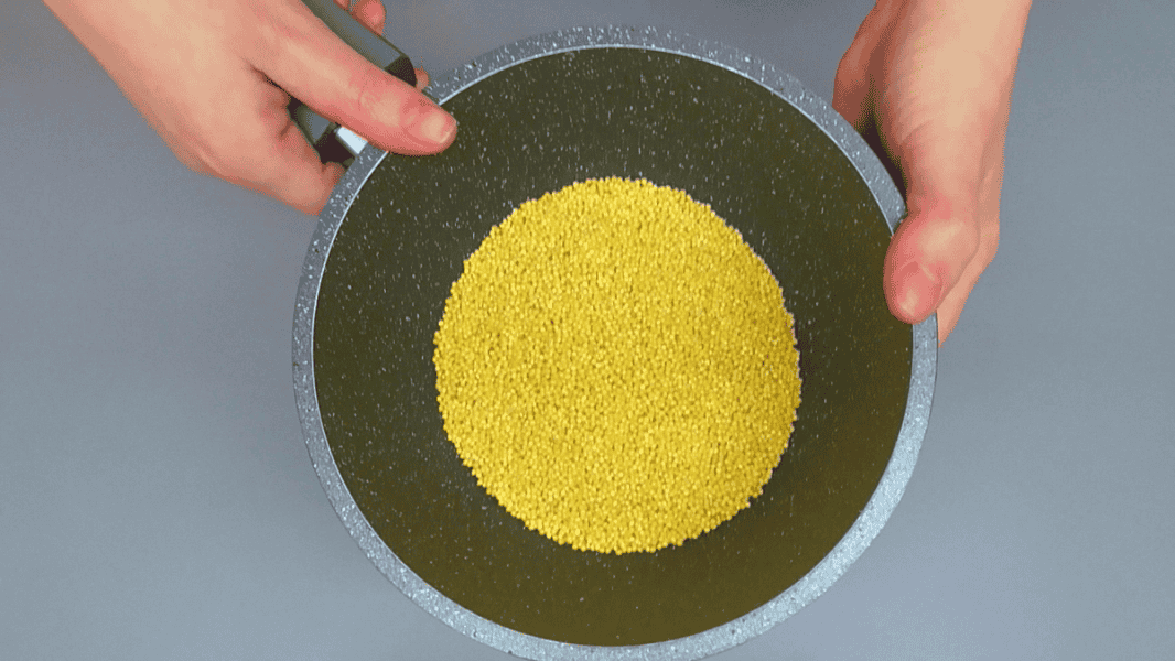 ✅Для початку відваримо пшоно — промиваємо крупу, заливаємо її приблизно 400 мл води та варимо на повільному вогні. Посуд для варіння крупи має бути з товстим дном. Залежно від якості пшона води воно може взяти трохи більше або менше. Пшоно має добре розваритися, у ньому не повинно залишитись зайвої води.