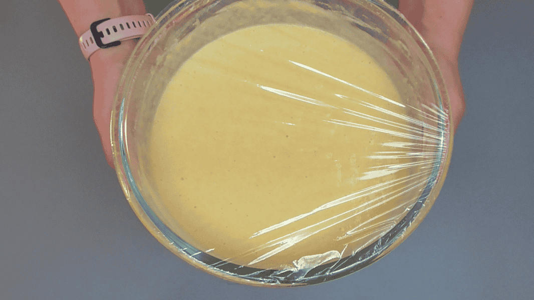 ✅Накриваємо чашу з тістом і прибираємо в тепле місце для бродіння. Довго тримати це тісто не потрібно, достатньо 40-60 хвилин. За цей час маса збільшиться в обсязі і в ній з’явиться багато повітряних бульбашок.