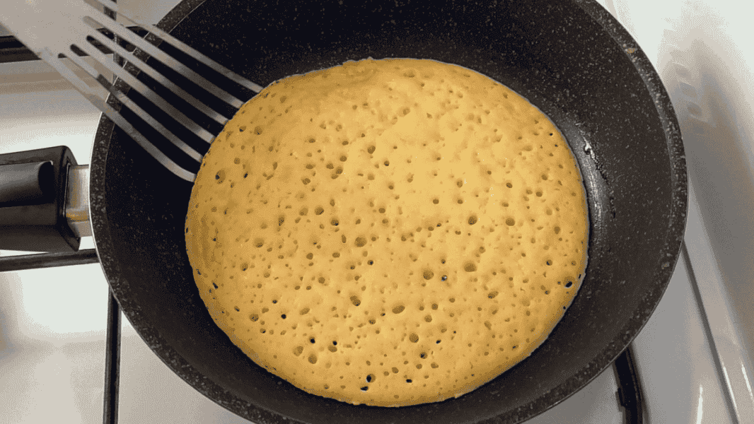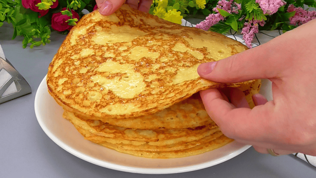 🕒Печемо млинці на сухій або злегка змащеній олією сковороді, на вогні трохи нижче середнього, з двох боків до золотистого кольору.