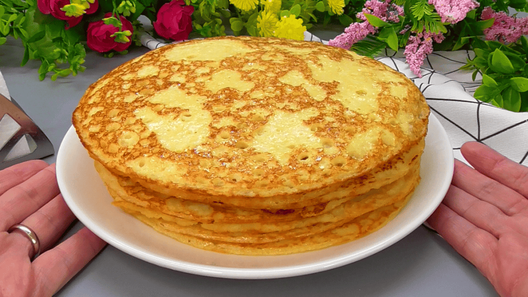 Пропоную вам рецепт млинців на пшоняній каші. Це дуже смачні, м’які, золотаві товстенькі млинці, які варто спробувати.