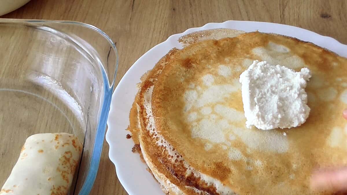 Сьогодні пропоную Вам дуже ніжні і ароматні млинці з сиром! Самі млинці тоненькі, а начинка нежирна і соковита, і її дуже багато! Це відмінний варіант на сніданок або вечерю! Такі млинці можна заготовити про запас і швидкий сніданок у Вас на столі! Готуйте із задоволенням!