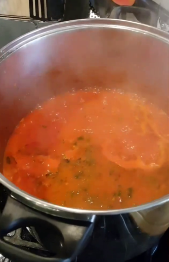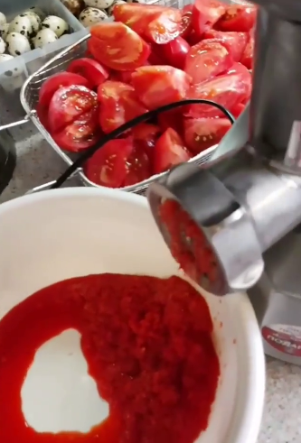 Помідори і солодкий перець перекручуємо на м’ясорубку і ставимо на плиту. Доводимо до кипіння і варимо 10 хвилин.