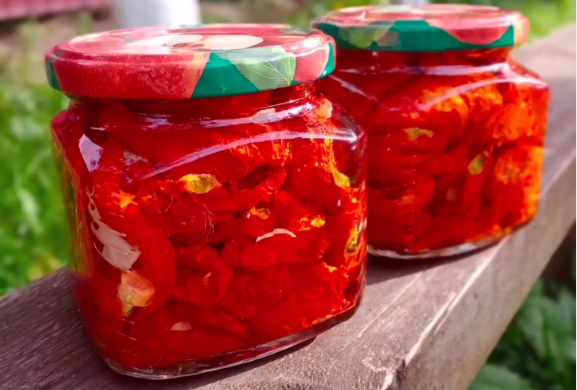 Готові в’ялені томати розклала по баночках і залила гарячою (не розжареною!!) оливковою олією. От і все! 👍