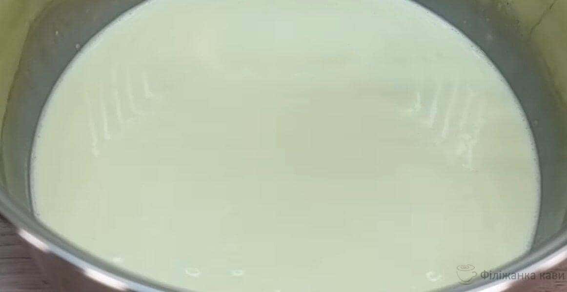 Вливаємо молоко і перемішуємо. Варимо на середньому вогні до загустіння. Викладаємо вершкове масло і перемішуємо.