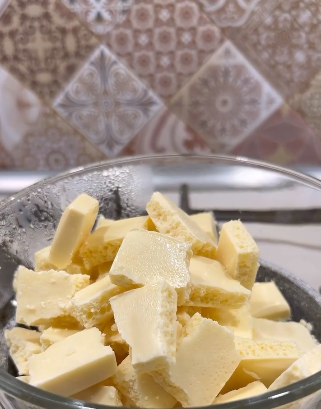 ☑️На водяній бані розтоплюємо вершкове масло та білий шоколад, постійно помішуючи (або в мікрохвильовій печі).