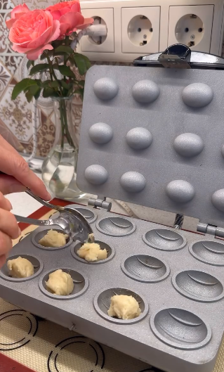 ☑️Тісто викладаємо в розігріту горішницю двома ч. л, за вагою для горішниці., у мене 7 грам.