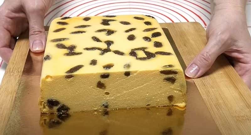 Запіканка виходить повітряною і м’якою, не сухою, після охолодження маса стане щільнішою і просто нарізатиметься ножем.