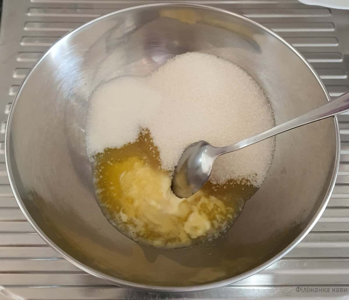 До вершкового масла кімнатної температури додати цукор, сіль, ванільний цукор.