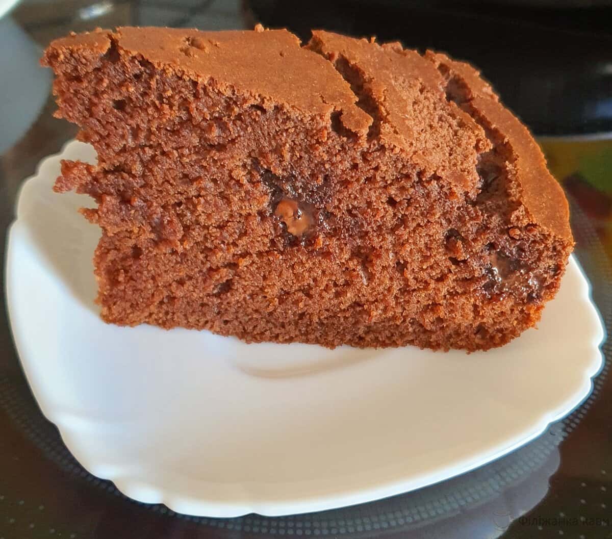 Цей кекс з шматочками шоколаду, дуже простий в приготуванні, але від цього не менш смачний. За структурою дуже ніжний і вологий всередині, з найтоншою хрусткою скоринкою зовні і острівцями рідкого шоколаду.