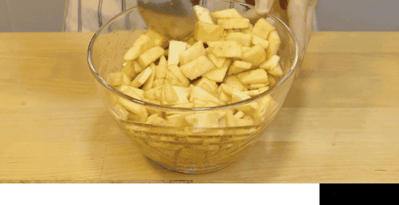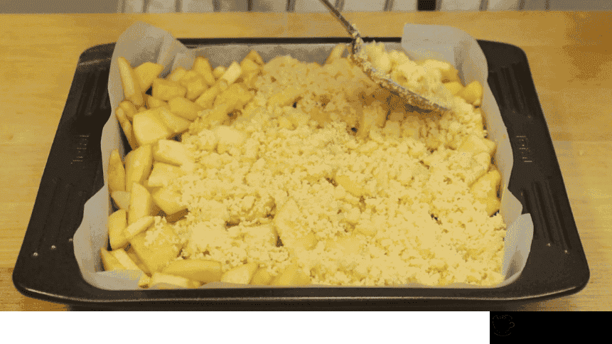 Сік з яблук просочує крихту і під час випікання вона перетворюється на тісто.