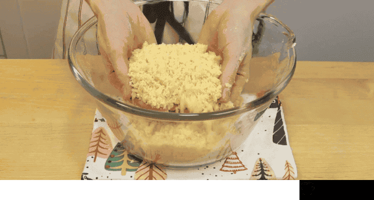 Борошно змішую з розпушувачем. Додаю сіль та цукор. Перекладаю м’яке масло. Яйце змішую виделкою і вливаю в миску.