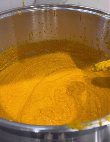 Вимкнути вогонь і пробити блендером до однорідної шовковистої маси, потім знову увімкніть вогонь і безперервно помішуючи, кип’ятіть ще 5 хвилин!