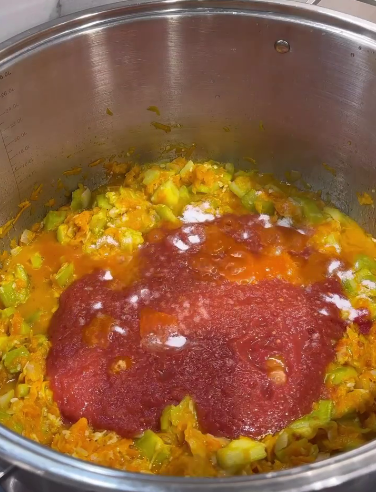 Помідори можна перекрутити прямо з шкіркою і поставити уварюватися, АЛЕ я завжди раджу ошпарити окропом помідори, очистити від шкірки, нарізати в мисці кубиками (якщо виділитися прозора жовтенька водичка, її неодмінно злити), тоді будь-яка заготівля буде смачніше і якісніше🏍 🏻