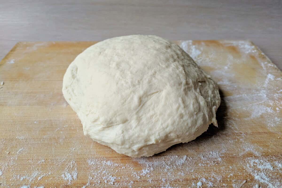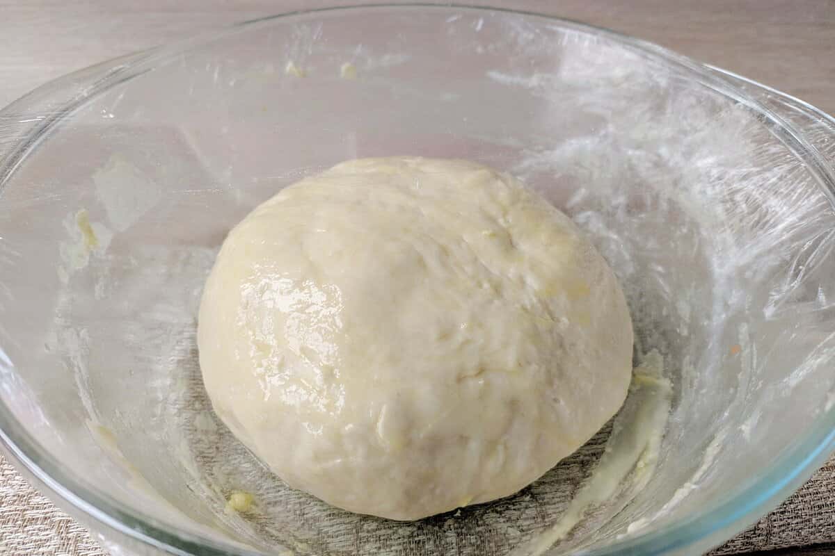 5. Ділимо його на частини і кожну частину ще трохи вимішуємо. Накриваємо рушником і даємо постояти при кімнатній температурі ще 60 хвилин, щоб воно знову підійшло.