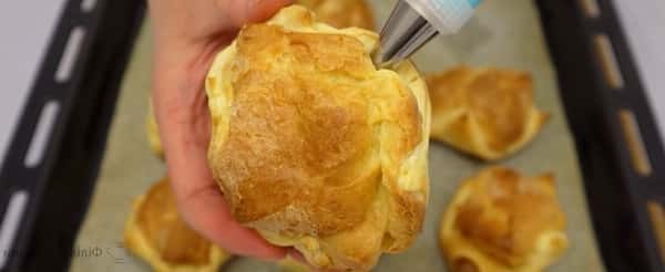 Кладемо в кондитерський мішок і видавлюємо всередину тістечок.