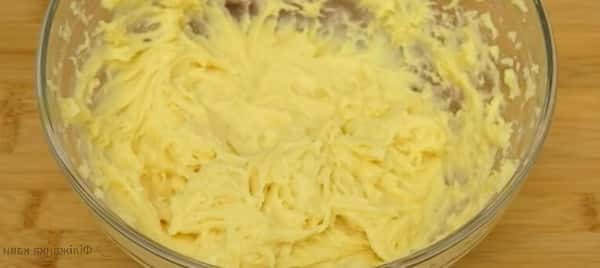 Перекладаємо масу в миску і розбиваємо по одному яйцю, змішуємо міксером.