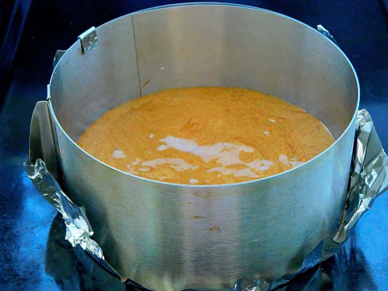 - Викласти в форму. Якщо використовуєте кулінарне кільце без дна, застелити його фольгою і змастити маслом, стінки не змащувати. Діаметр форми 17 сантиметрів.