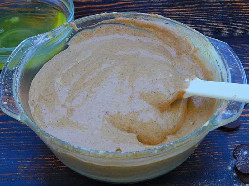 - Перемішати лопаткою. Тісто трохи опаде, по консистенції воно схоже на ніжний повітряний шоколадний крем.