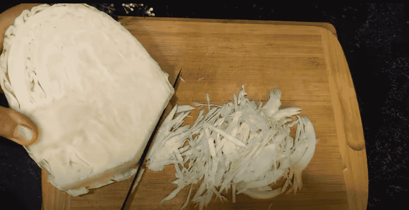 3. Капусту шаткуємо тонкою не довгою соломкою. На цю кількість перцю капусти мені знадобилося 1,600 кг. Кількість капусти залежить від розмірів перцю та товщини стінок і може відрізнятися, враховуйте це.