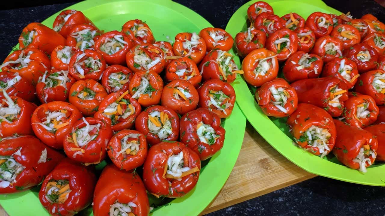Незвичайний, просто шалений болгарський перець, фарширований капустою на зиму! Все дуже просто, а результат приголомшливий. Такий перець чудово зберігатиметься при кімнатній температурі.