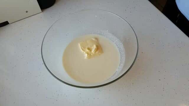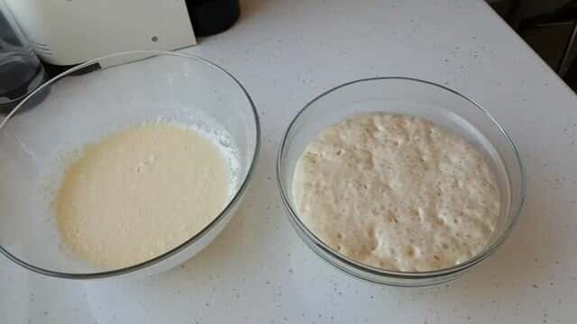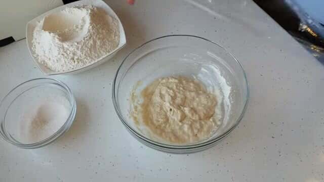 У теплу воду насипте дріжджі і додайте трохи цукру від загальної норми. Злегка перемішайте, не обов’язково доводити дріжджі до повного розчинення. Додайте 3-4 столові ложки борошна і замісіть рідке тісто.