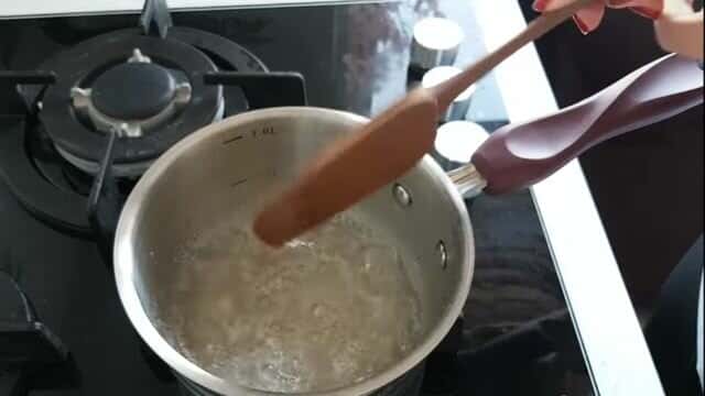 Сироп переливаємо в чашу і даємо охолонути. Желатин розчиняємо в мікрохвильовій печі або на водяній бані. Отриману консистенцію вливаємо в сироп. Відразу збиваємо міксером на високій потужності.