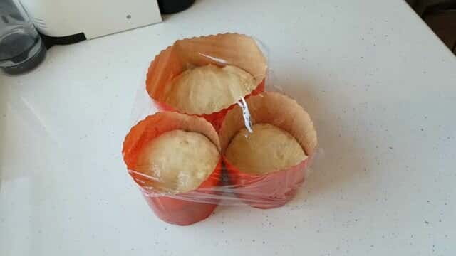 Готову здобу укладіть в чашу змащену олією, щільно накрийте і приберіть в тепле місце, на 1-1,5 години. По закінченню часу обійміть підійшовше тісто, розділіть його на необхідну кількість частин і укладіть в форми.